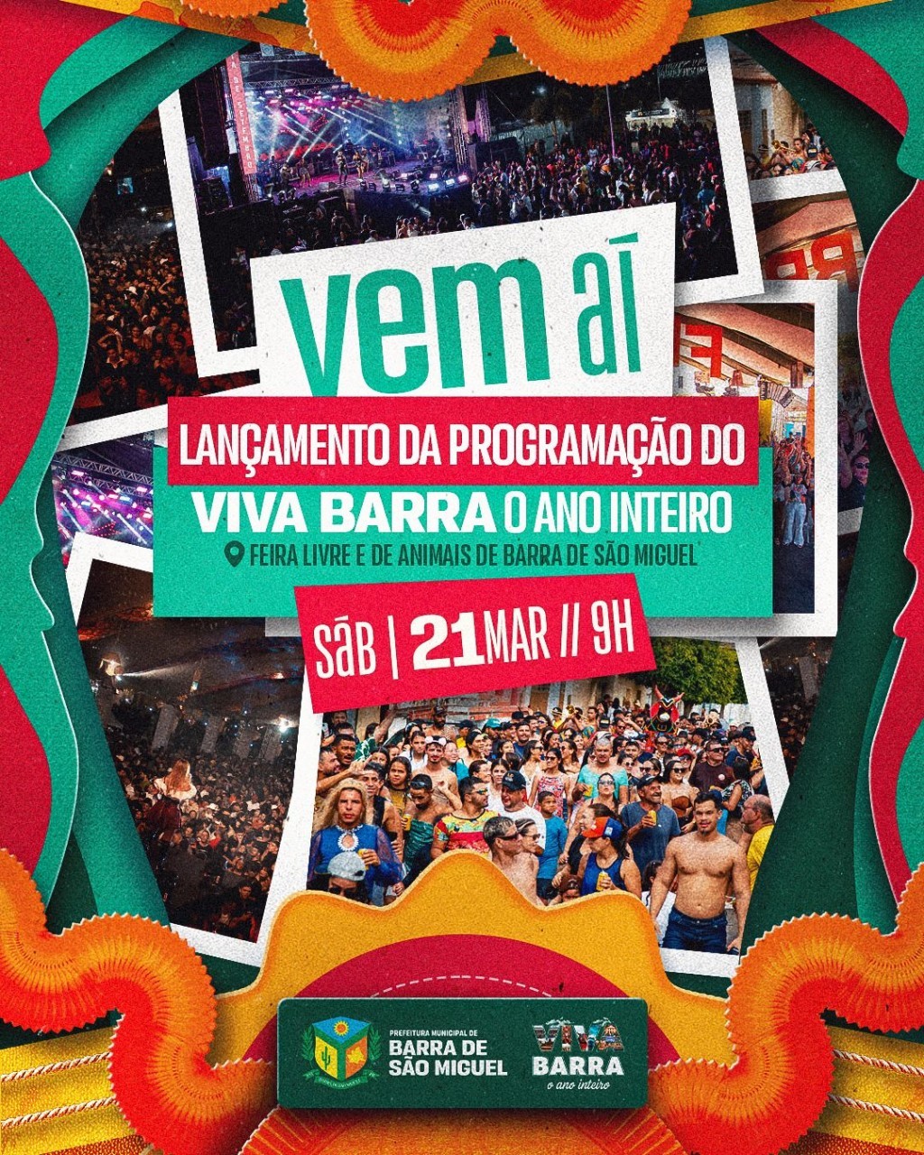 A Prefeitura de Barra de São Miguel realiza, neste sábado (21), o anúncio oficial das atrações que farão parte do calendário de eventos “Viva Barra o Ano Inteiro 2026”. A apresentação acontecerá às 09h00, na tradicional Feira Livre e de Animais, um dos espaços mais simbólicos do município e ponto de encontro da população.
