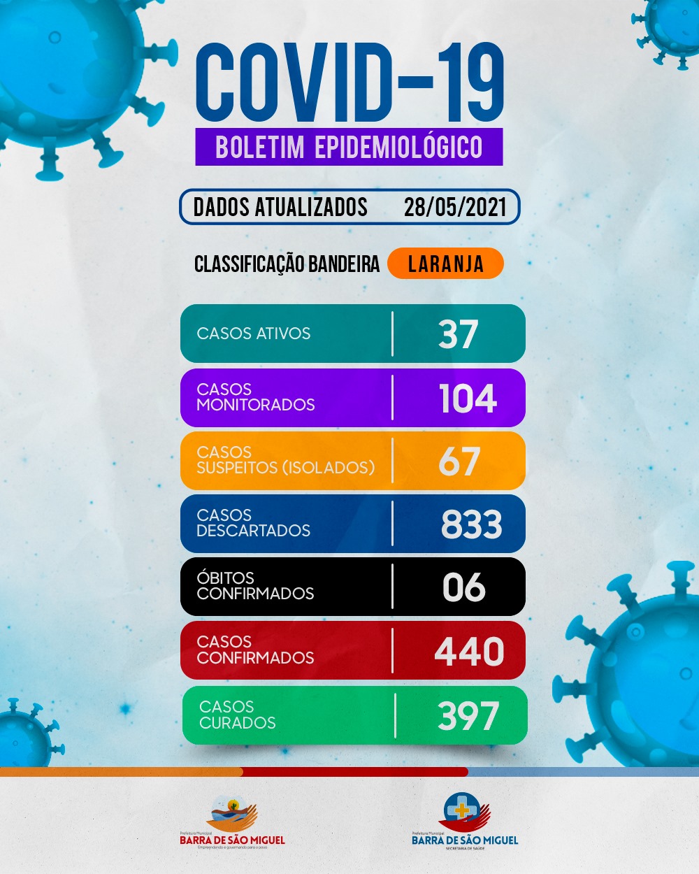A Prefeitura Municipal de Barra de São Miguel, por meio da Secretaria Municipal de Saúde, vem nesta sexta-feira (28/05), divulgar mais um boletim informativo sobre a Covid-19.