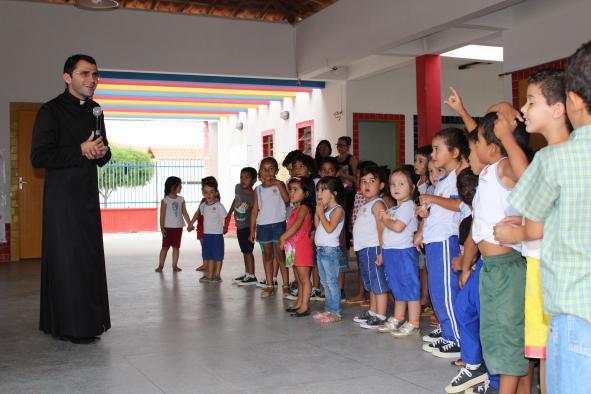 Padre Onaldo orientou as crianças de como devem se comportar, também falou da