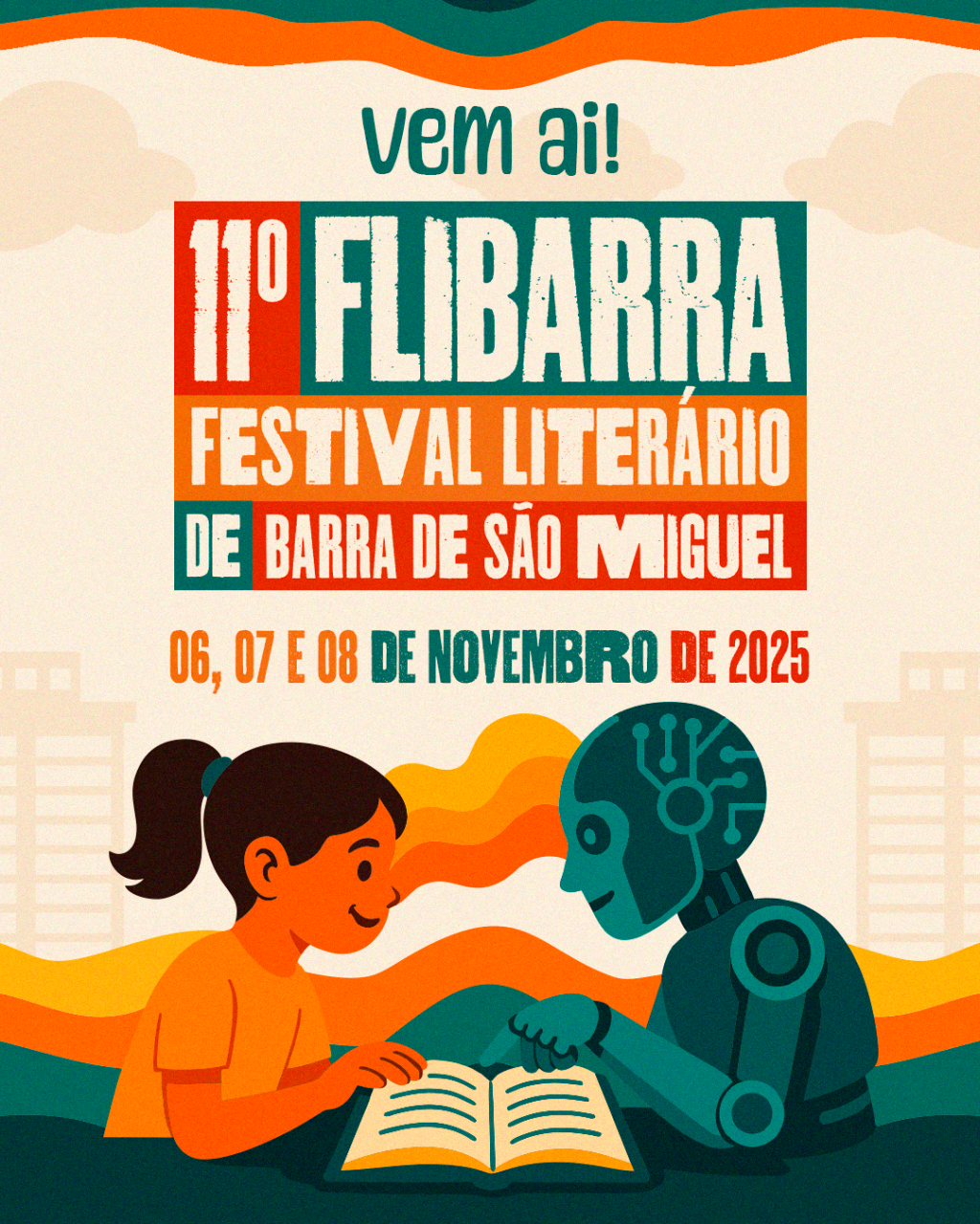 A Prefeitura de Barra de São Miguel, por meio da Secretaria de Educação, lançou nesta terça-feira (30) a identidade visual do 11º Festival Literário de Barra (FLIBARRA), que acontece nos dias 6, 7 e 8 de novembro. O evento deste ano terá como tema: “Da Tradição à IA: A Transformação do Aprender, Pensar e Agir na Construção de um Futuro Sustentável”.