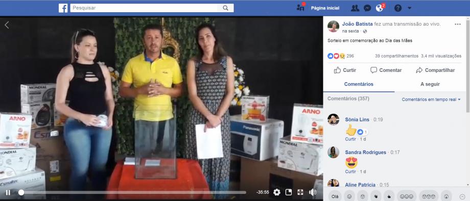 em tempo real através do facebook, João Batista sorteou 15 prêmios para as mães