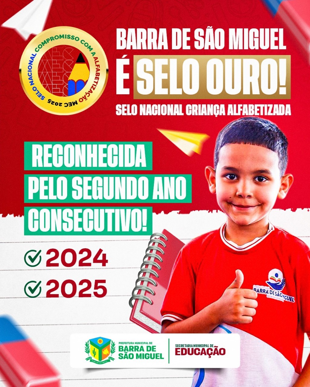 Mais do que um título, o Selo Ouro representa a consolidação de um trabalho sério e comprometido com o futuro. Ele reafirma que investir em educação é transformar realidades, ampliar oportunidades e garantir melhores perspectivas para as crianças e adolescentes de Barra de São Miguel.