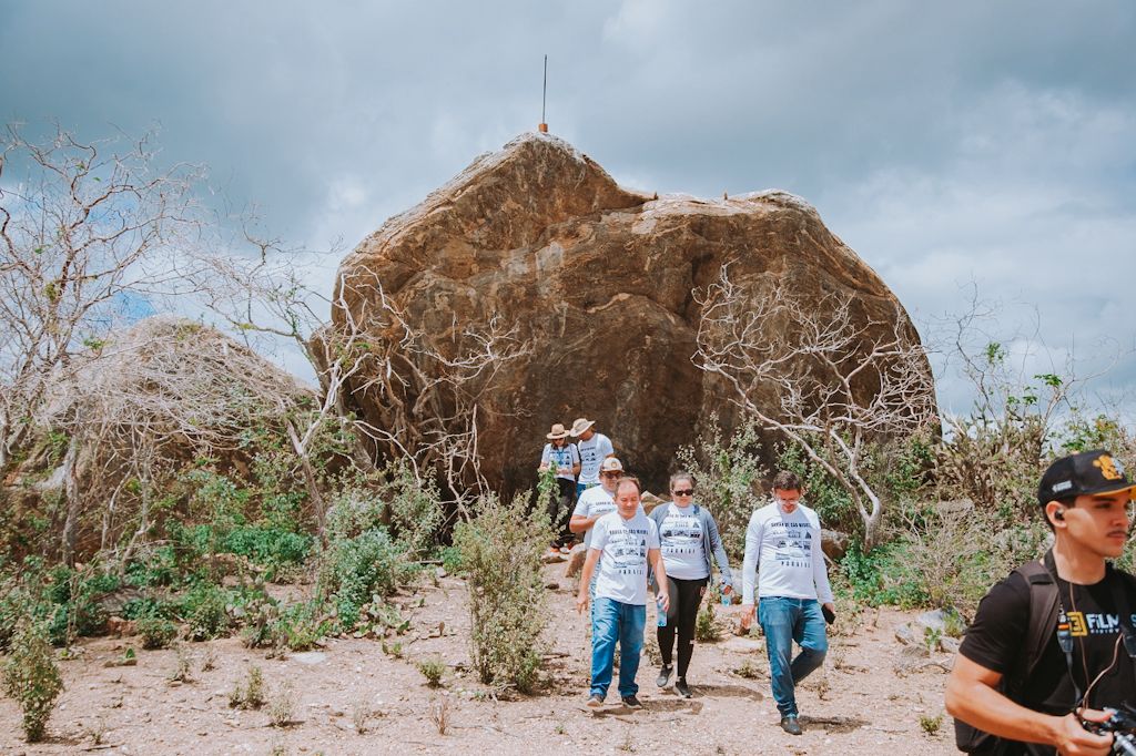 O roteiro continuou pela comunidade da Quixaba, onde os participantes conheceram importantes pontos turísticos naturais, como a Pedra do Índio, que abriga pinturas rupestres, evidenciando a presença de povos antigos na região, e o imponente Paredão do Tocha, formação rochosa que chama a atenção pela grandiosidade e beleza cênica.