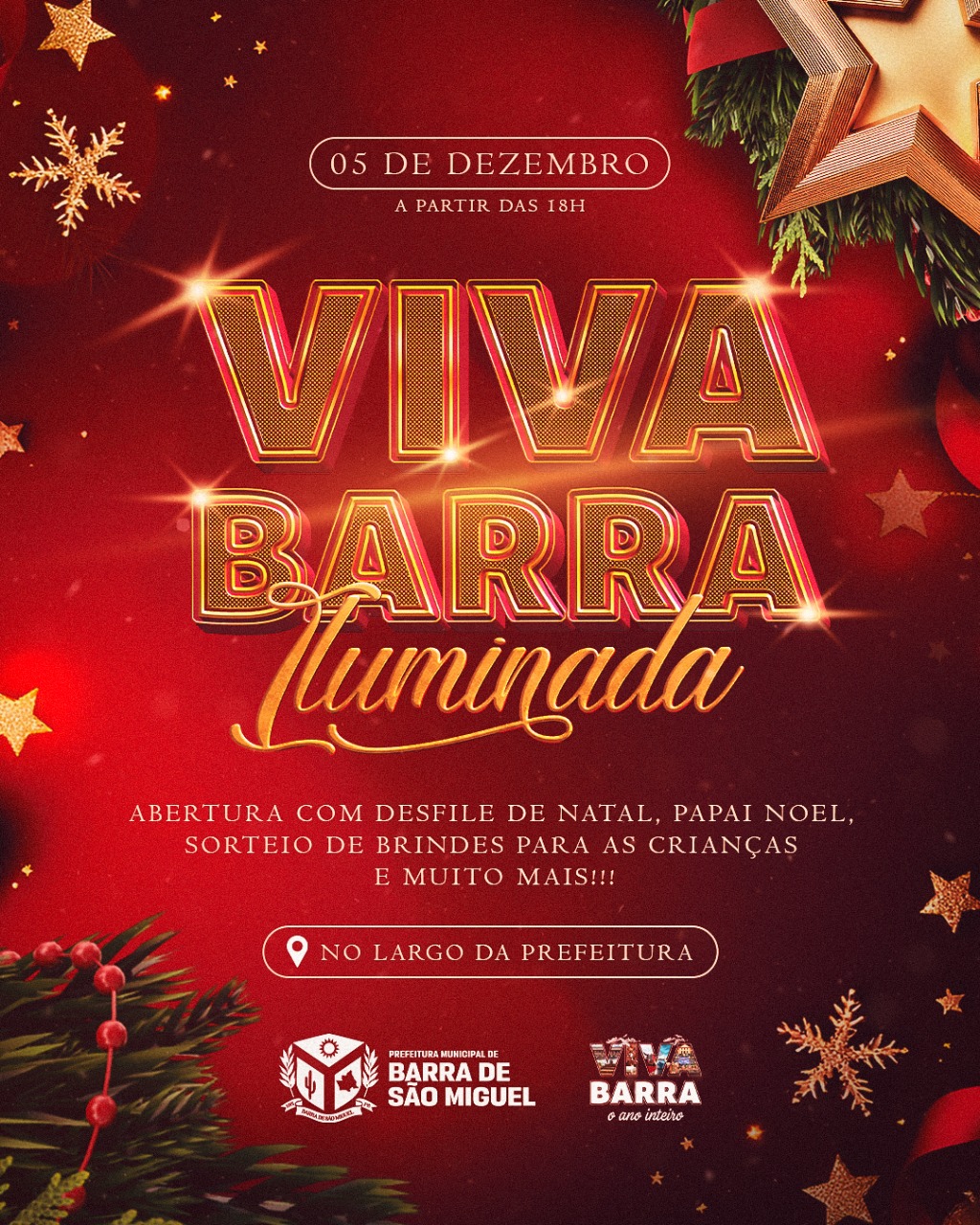 O Viva Barra Iluminada ganha ainda mais destaque por acontecer no mês em que Barra de São Miguel celebra seus 64 anos de emancipação política, comemorados no dia 14 de dezembro. A programação especial reforça a ideia de que Barra se vive o ano inteiro, unindo tradição, cultura e momentos de convivência que fortalecem o sentimento de pertencimento de toda a população.